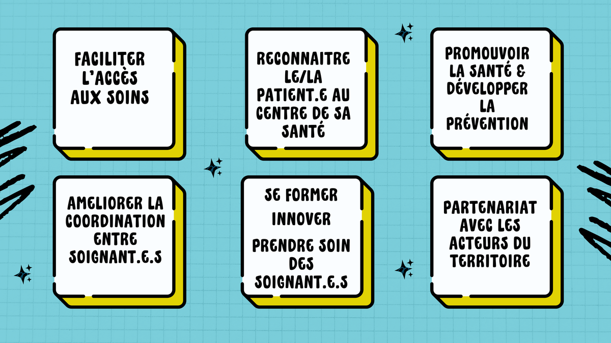 - de nous former, bénéficier des savoirs des autres soignant.e.s du territoire.